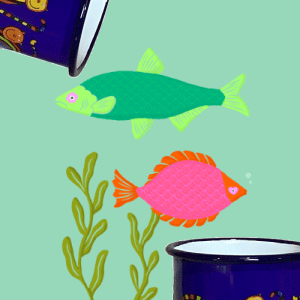 マグカップ(S) 青のしまネコ